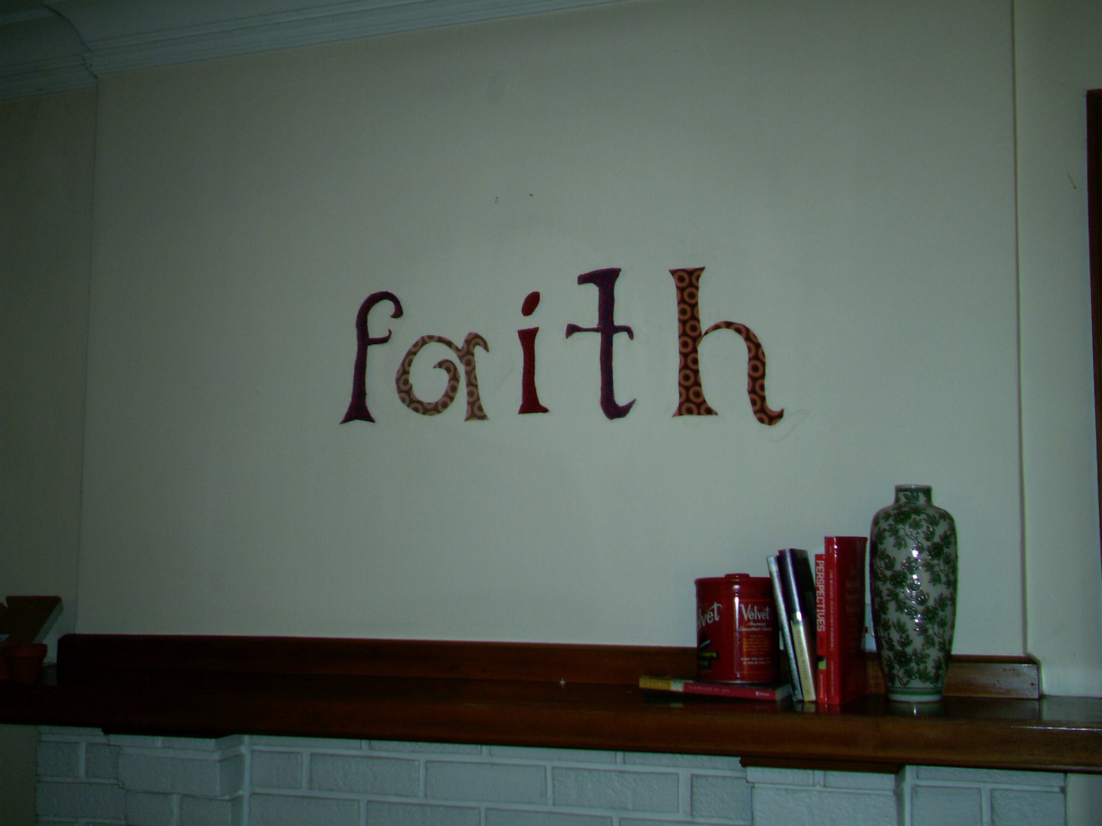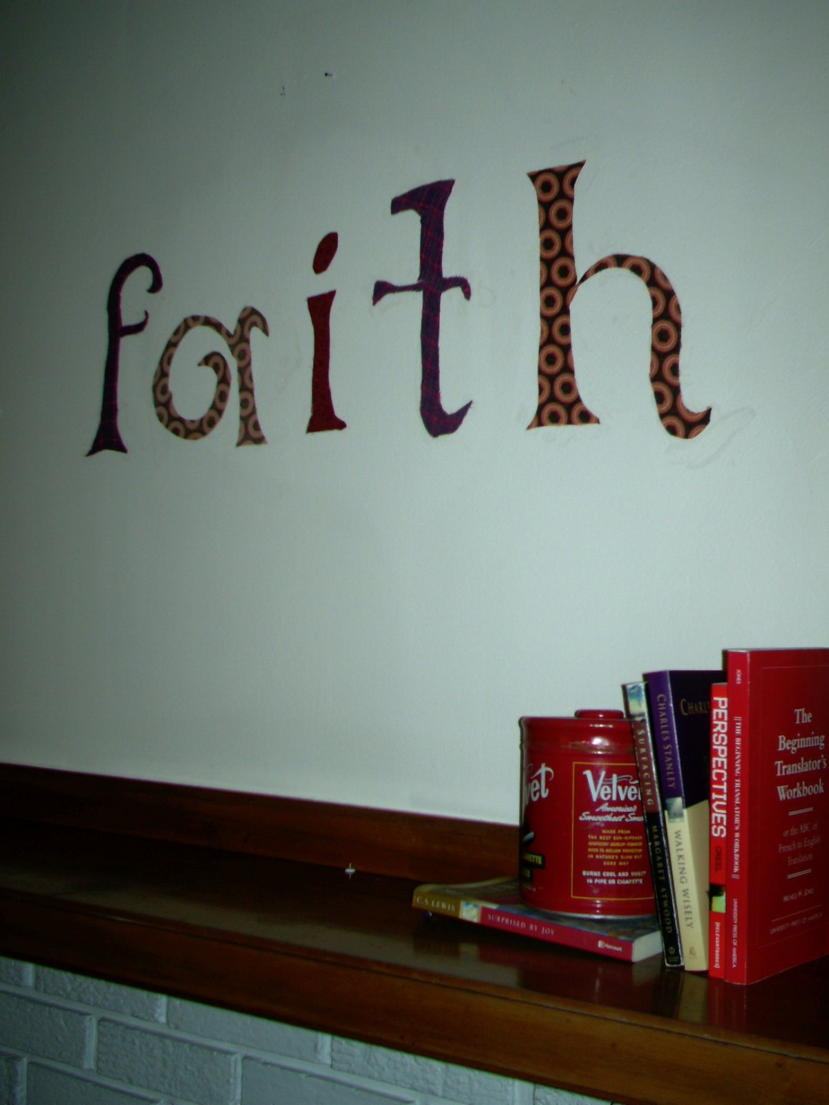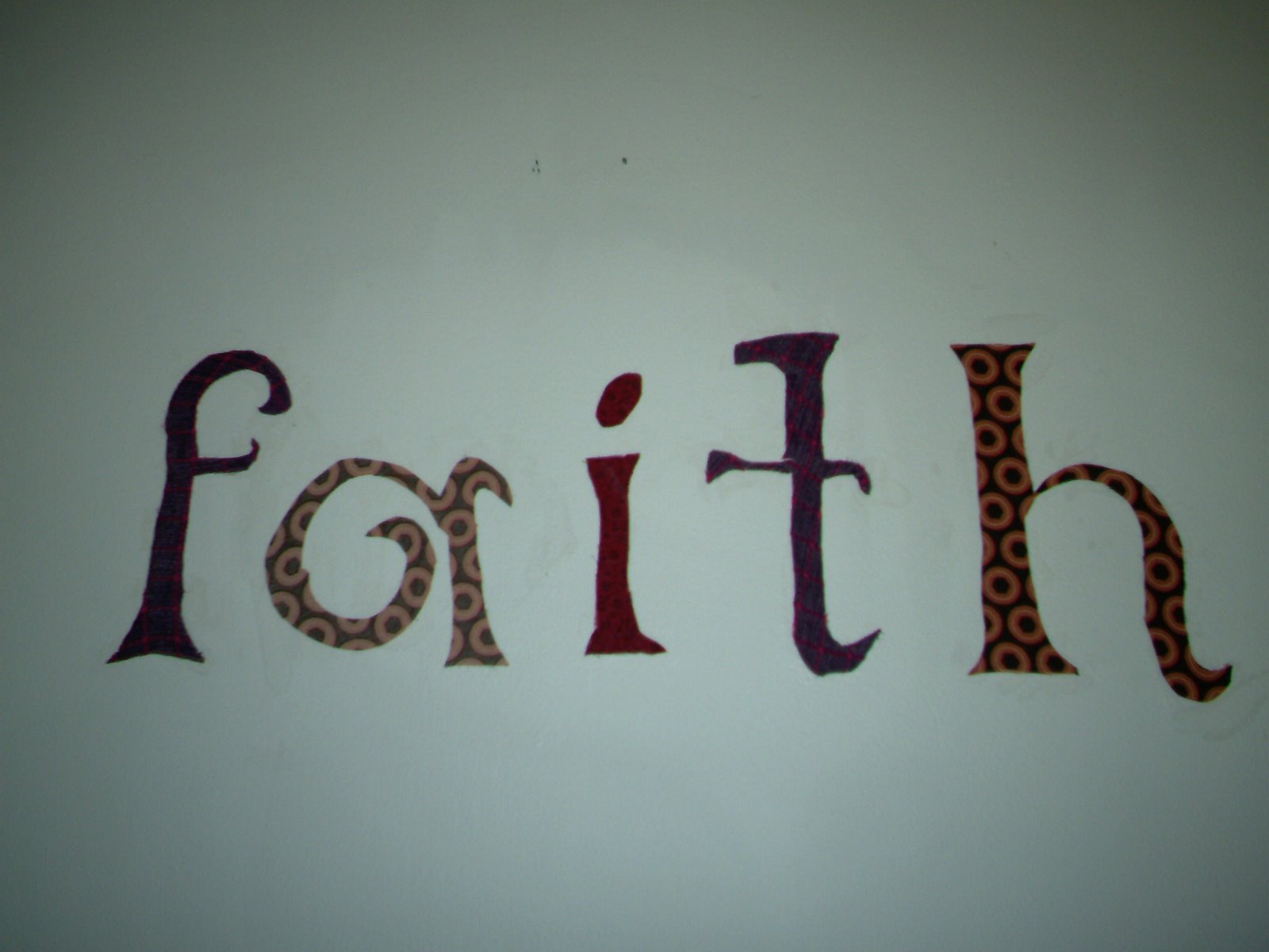 DISCLAIMER- I’m not completely happy with it, because of course I cut some corners… so I think I’ll be re-doing it with better fabric and actually trace the letters onto the fabric. Because I kind of made up this project- I printed out letters pretty big (bigger than one sheet of paper- you can go upload a pdf of the font and word you want to here and print out in the size you want) and cut them out, pinned them to the fabric, and cut the fabric. This of course did not work very well. Next time I will trace the letters onto the fabric and then cut.