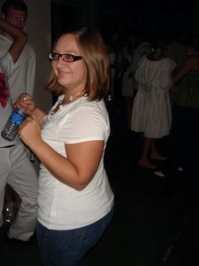 So, the night comes. Crystal and I spend the first part of the night at a rainy football game cheering on our cousin Vince (because we’re family- and that’s how we do 🙂 ) And quick changed at McDonald’s before heading over to the party. When we got there, there were folks in white chain smoking outside the building, along with a white tutu wearing free spirit, so I knew this was the place. We hopped on the elevator to take us up to the loft(along with the free spirit,) and when we got off the elevator, a sea of white awaited us! I was at once, elated for Jen that her dream of a white party had turned out so well, and terribly awkward. Not only do Jen’s friends tend to be really eclectic and cool, but also weirdly tall? I saw a few people I knew, that I went boating with this summer, and they apparently think I’m hilarious (yeah!,) but when people say that in conversation it always makes it pretty awkward. Like, Them- “hey! good to see you! when you left, we kept talking about how great and funny you are!” Me- “Wow, thanks! it was great to hang out with you too!” but then I feel the need to like, do stand up comedy or something! They thought I was so great next time! What did I do last time to be so funny? Can I think of something like that to do now? Ahh! Anyway, I said goodbye to those friends and bee lined to my friends Katie and Byron, who were thrilled to see some friends arrive. We chatted for awhile, tried to move around the party but avoid the dance floor. After awhile, hyped up on endorphins and awkward energy, I started getting in the mood. I started telling people funny stories, engaging strangers in conversation, and doing a little bit of dancing. Apparently my sweet moves were a hit, because yesterday this picture