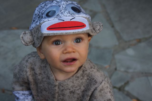 My honorary nephew and God-son (Tina said I could call him that if I wanted… I definitely want… dang those protestants for not assigning God-parents!)was a sock monkey for Halloween.