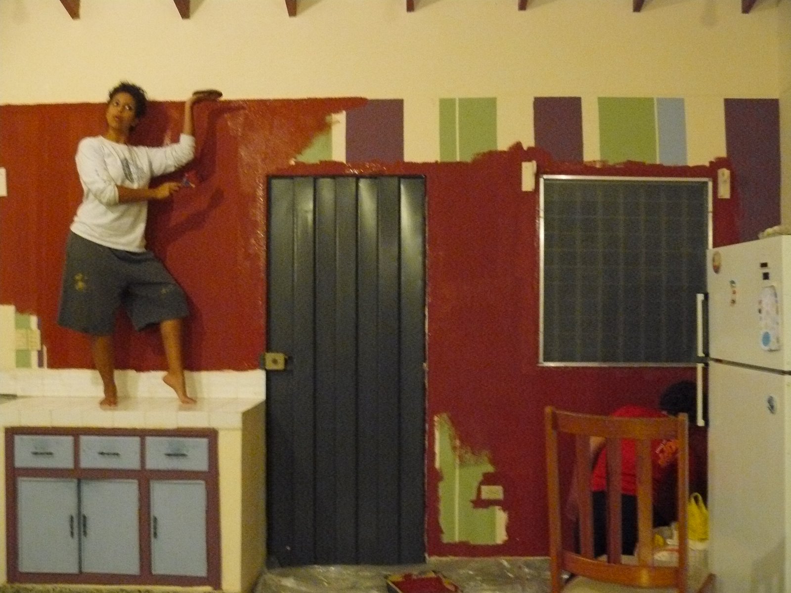 Color two went on pretty well, until we realized we were painting with two different colors. Yes, that’s right. Apparently, in Honduras, you should never assume that two paint cans of the same label are actually the same paint. Things are just a bit different here.