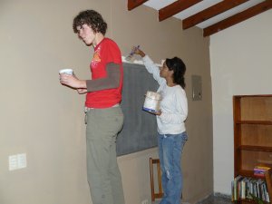 So, my roommates and I have long lamented our strange, bare, cement walls and dreamed of a paint makeover. All sorts of obstacles loomed in our way: getting the paint from the hardware store to the mountain without a car, explaining a vision for the color rust, recruiting everyone to see the same vision, finding the perfect color from 16 cheap choices to somehow fit the vision, carving out time to tear up our common space, being crazy enough to just do it.