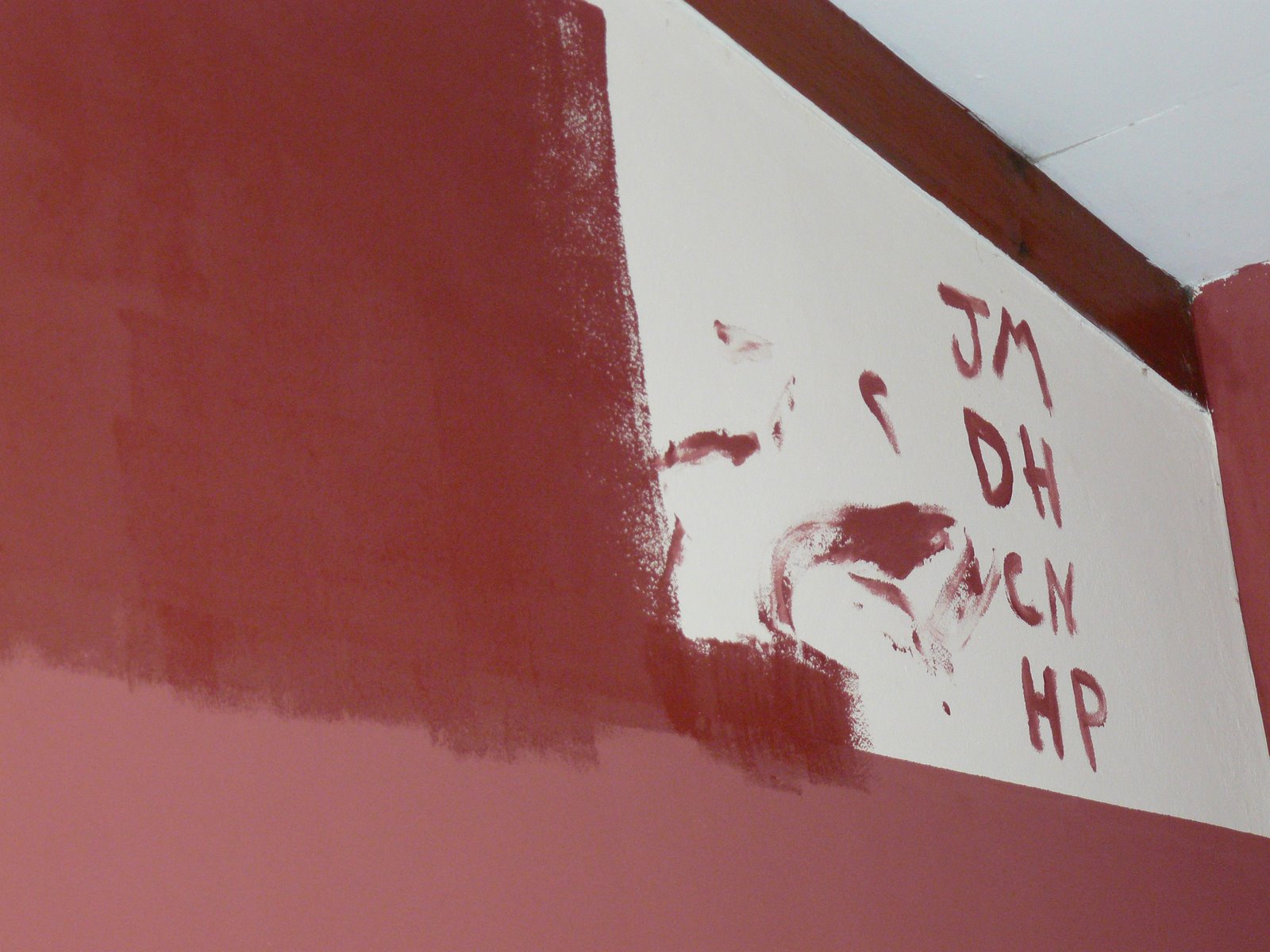 I’m not sure if this was Friday or Saturday night, but either way it was the last few strokes before we cleaned and crashed… as you can see from the excitement on my tired, painted, dirty face!