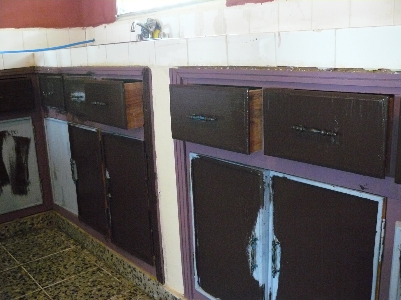 And then, we started looking around to see what else we could paint. These cabinets, which were so delightfully colored purple and blue, were a strange sight to greet a morning wanderer in search of breakfast in the morning… which is why we decided to mix a few colors to find chocolate brown. Who doesn’t like something chocolate?