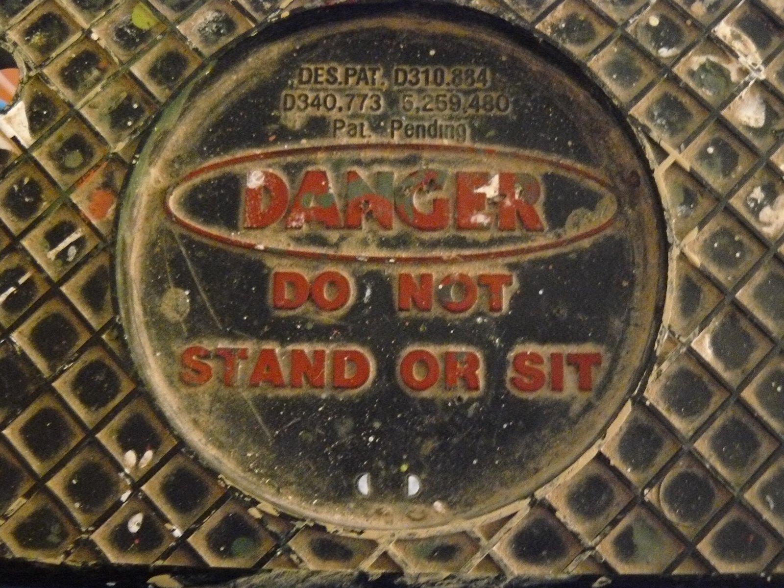 So, remember on Saturday we were having a hard time locating a ladder? Well, I tracked one down. The only problem emerged when the ceiling was about another ladder’s worth high. Did that stop us? No. Neither did this cautionary sign on the top of the ladder. I think it’s more of a suggestion than anything.