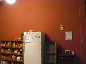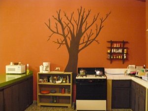 Here’s the piece where my creativity got a chance to run free. Since my roommates didn’t care, I let loose! I drew a tree on an overhead projector and then painted it right into our kitchen. I’ll add leaves eventually, but for now this is it.