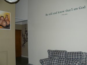 I wish you could see the sweat on these walls! But, you CAN see the amazing, fabulous “wall words” now stuck to our living area wall. There really couldn’t be a more fitting verse for us to see every time we enter our apartment. Thanks, Shelli, for sending this great addition!