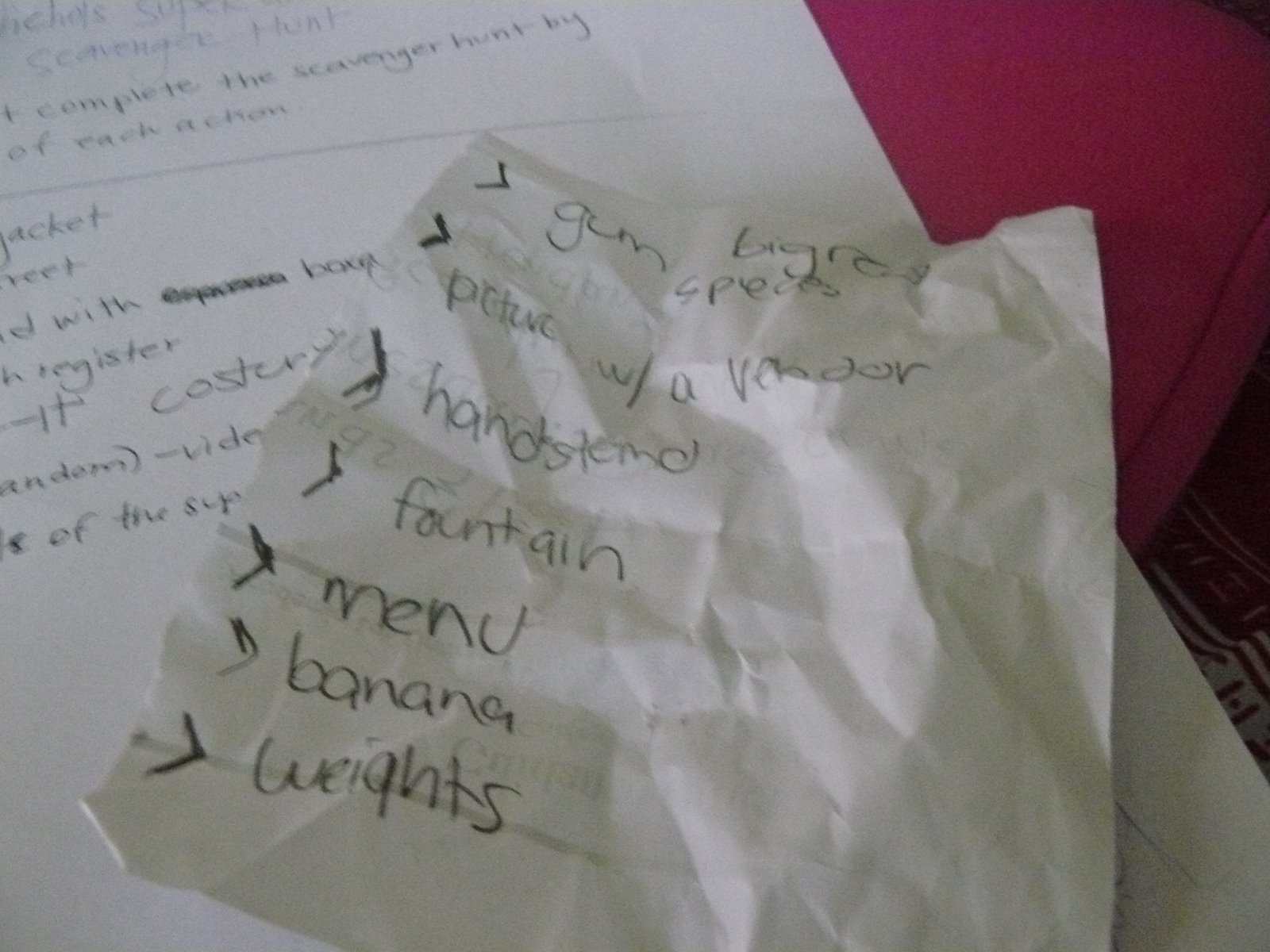 We frantically rushed the city and returned to the Quizno’s quite out of breath… I am proud to say Alexandra and I beat the other team handily (although we didn’t figure in that one of them is currently wearing an ankle brace, but hey, it’s a competition!). We took a few victory poses and compared our ridiculous pictures. My least favorite was me with an uncomfortable amount of Big Red chewing gum sitting on my tongue.