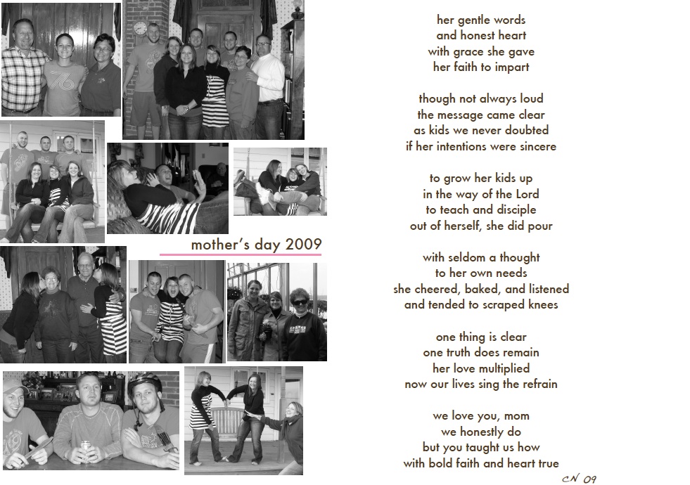 I wanted my mom to see it first, but this is my little way of saying thanks. I know, some of you think it is corny (namely, my siblings!!). But, mom and I have a special corny language and we understand each other there. Some people send balloons or flowers or cards or thoughtful gifts. I guess I like to send rhymes.